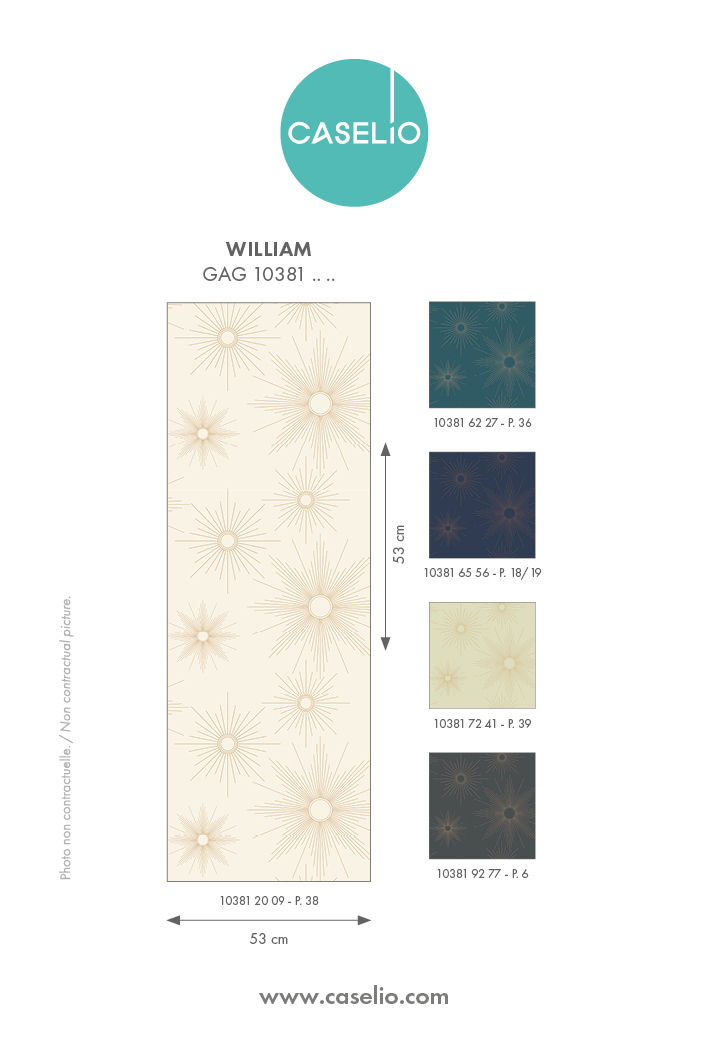 It is the sunshine in our lives! This wallpaper is an ode to this radiant star by opting for not one, but 5 sun designs in the signature colours of this chic Art Deco theme.
