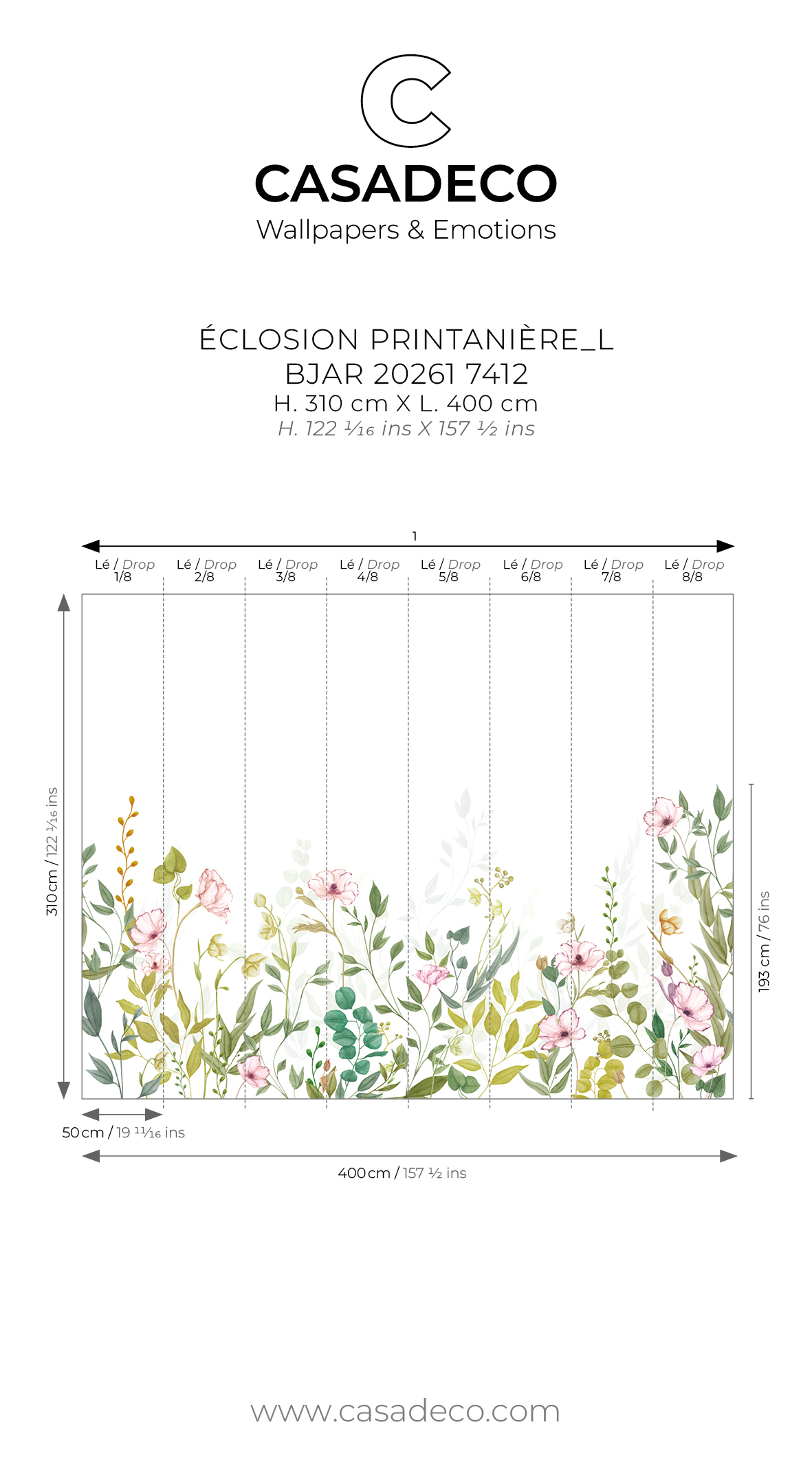 Largeur d'un Lé 50 cm / 20 inches