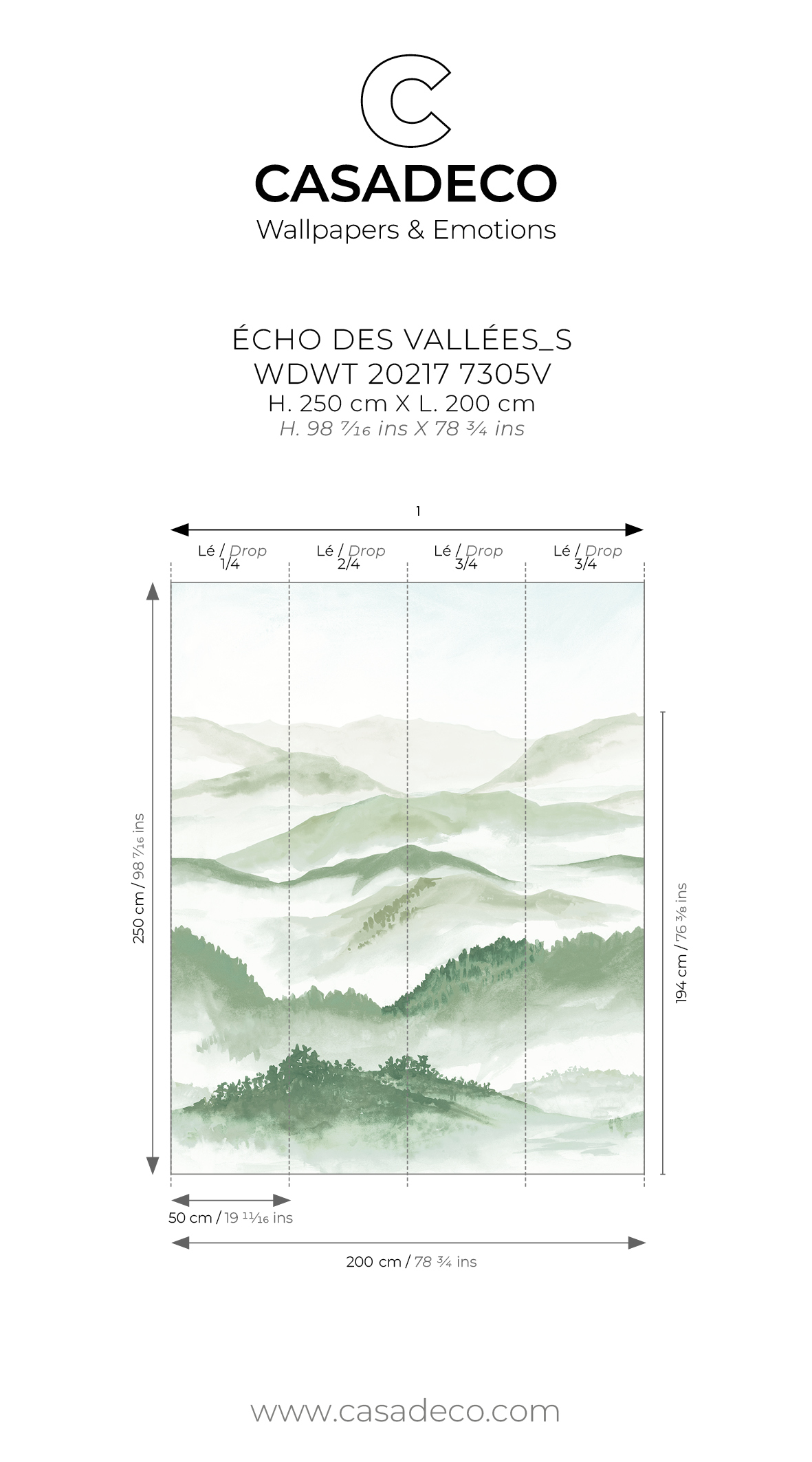 Largeur d'un Lé 50 cm / 20 inches