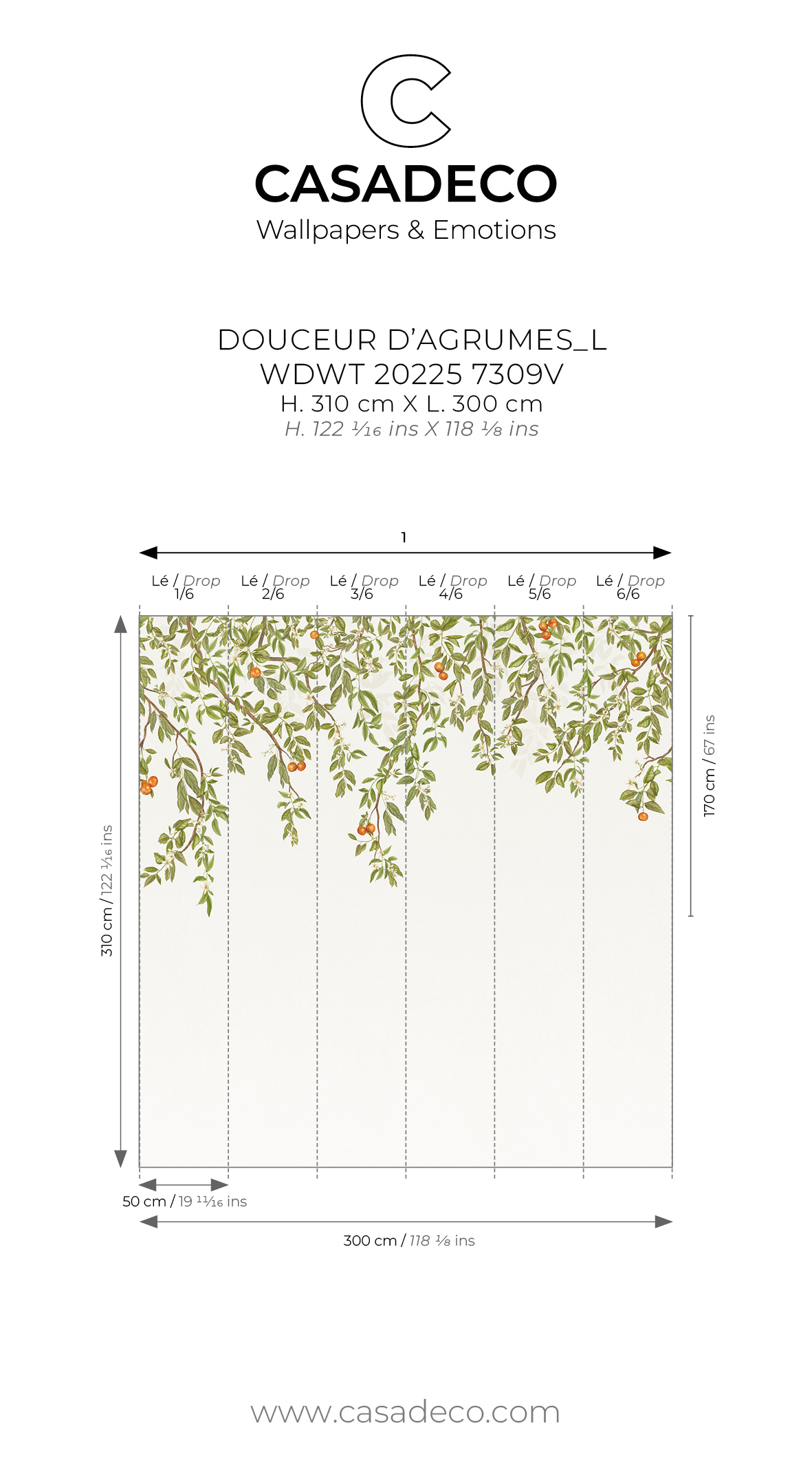 Largeur d'un Lé 50 cm / 20 inches