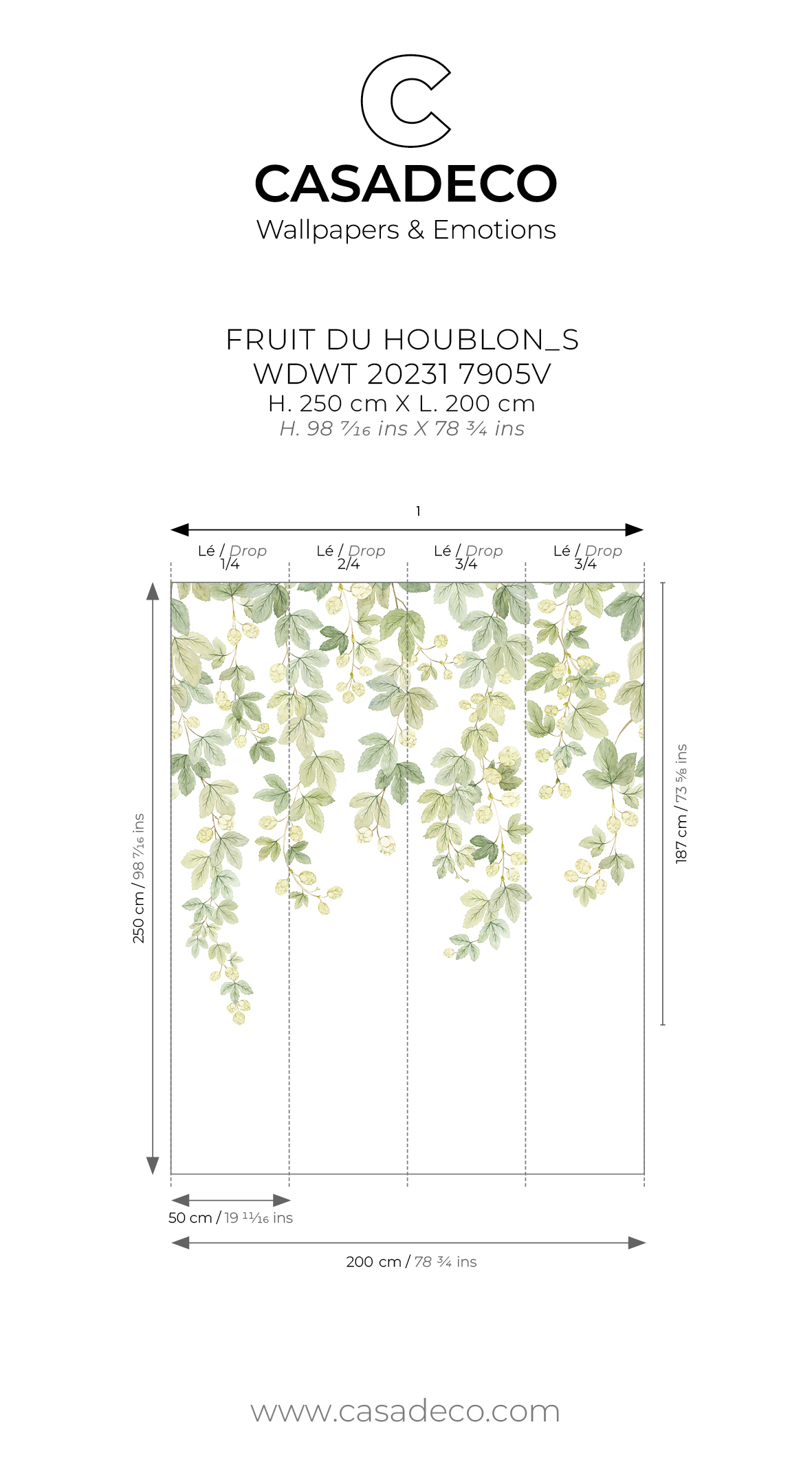 Largeur d'un Lé 50 cm / 20 inches