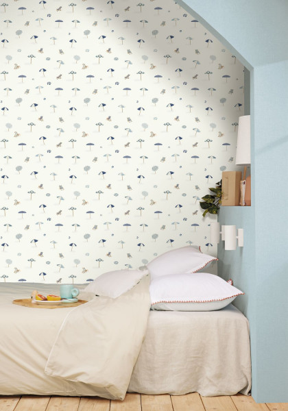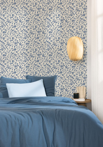 Pour la collection BLUE SHADES, nous avons exploré toute la subtilité et la profondeur du bleu, en travaillant une palette nuancée allant des bleus tendres et clairs, comme le bleu fumée, aux tons plus soutenus et enveloppants tels que le porcelaine, le bleu paon ou encore le denim. Afin d’équilibrer ces variations chromatiques et d’apporter de la lumière, la collection est ponctuée de teintes neutres et raffinées : blanc, beige et taupe, pensées pour adoucir les compositions et faciliter les associations sur les murs. La collection a été structurée par dessin, chaque motif déclinant sa propre lecture du bleu, qu’elle soit végétale, géométrique ou plus graphique. Cette organisation permet une compréhension immédiate de l’offre et offre au client la possibilité de choisir un dessin fort ou de combiner plusieurs références tout en conservant une parfaite harmonie d’ensemble. BLUE SHADES propose ainsi un univers apaisant et élégant, où le bleu se révèle dans toute sa richesse, entre douce